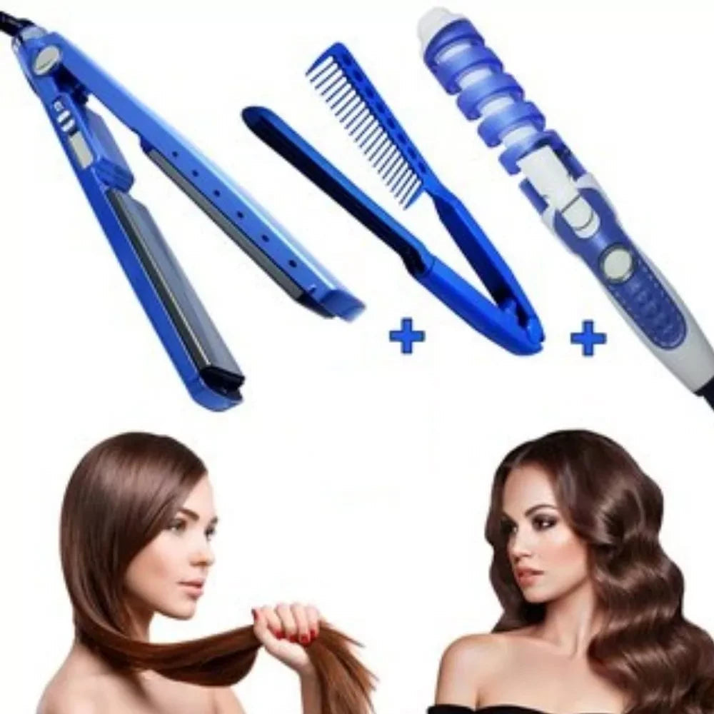 ✅Resultados profesionales:✨💇 Alisado y rizos impecables sin salir de casa🏡 ✅Cabello sano y brillante:🌟🔥 La tecnología de titanio protege el cabello del daño por calor. ✅Ahorro de tiempo y dinero: ⏳💸 Olvídate de costosas visitas a la peluquería. ✅Versatilidad:💃 Crea una gran variedad de peinados con un solo set.