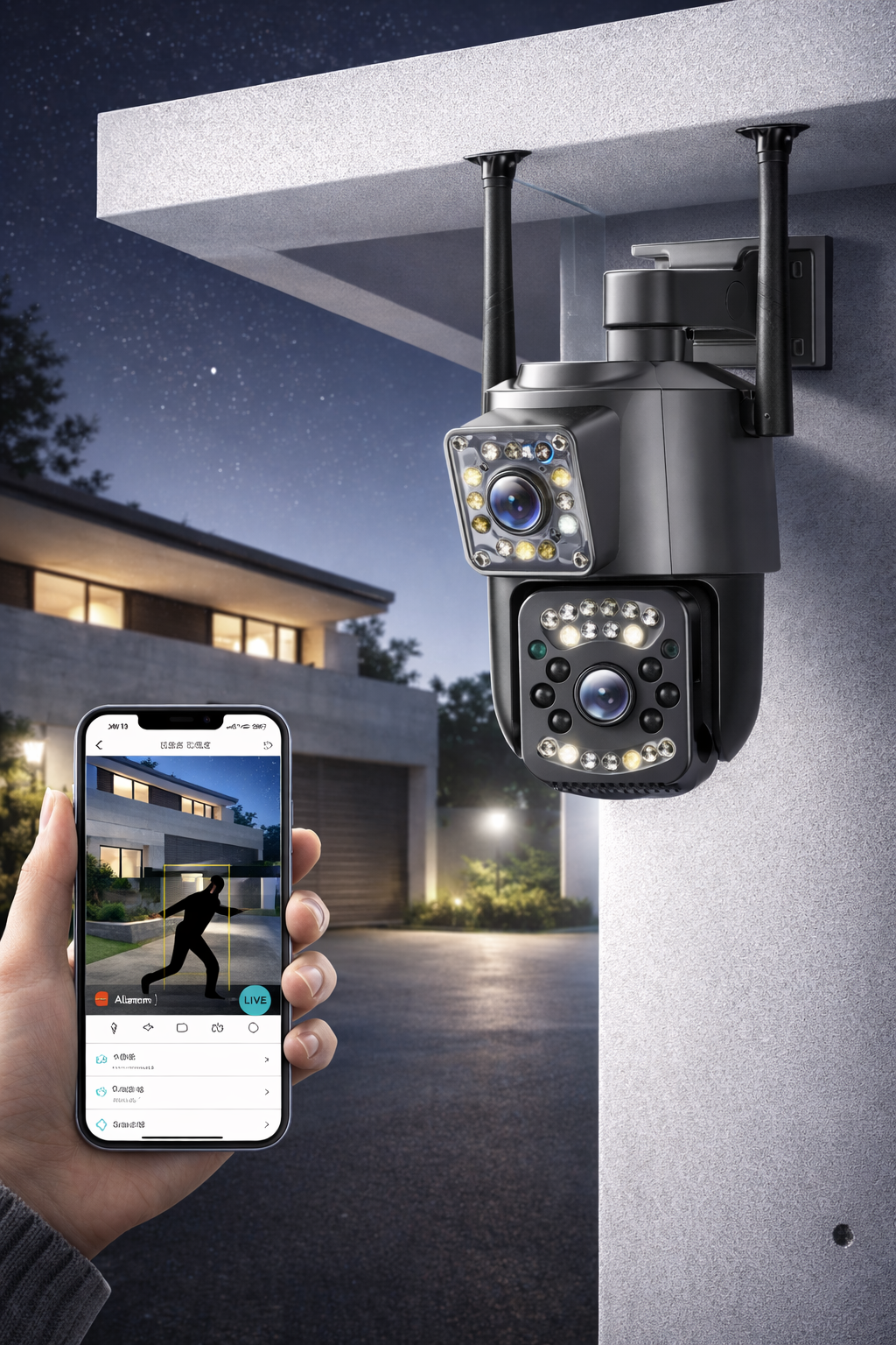 Además, su detección inteligente de movimiento permite identificar actividades sospechosas en tiempo real, enviando alertas directamente a tu celular para que puedas reaccionar de inmediato. Esto te permite mantener el control y la tranquilidad, sabiendo que tu hogar, negocio o propiedad está protegido las 24 horas del día, incluso cuando no hay iluminación en el entorno.